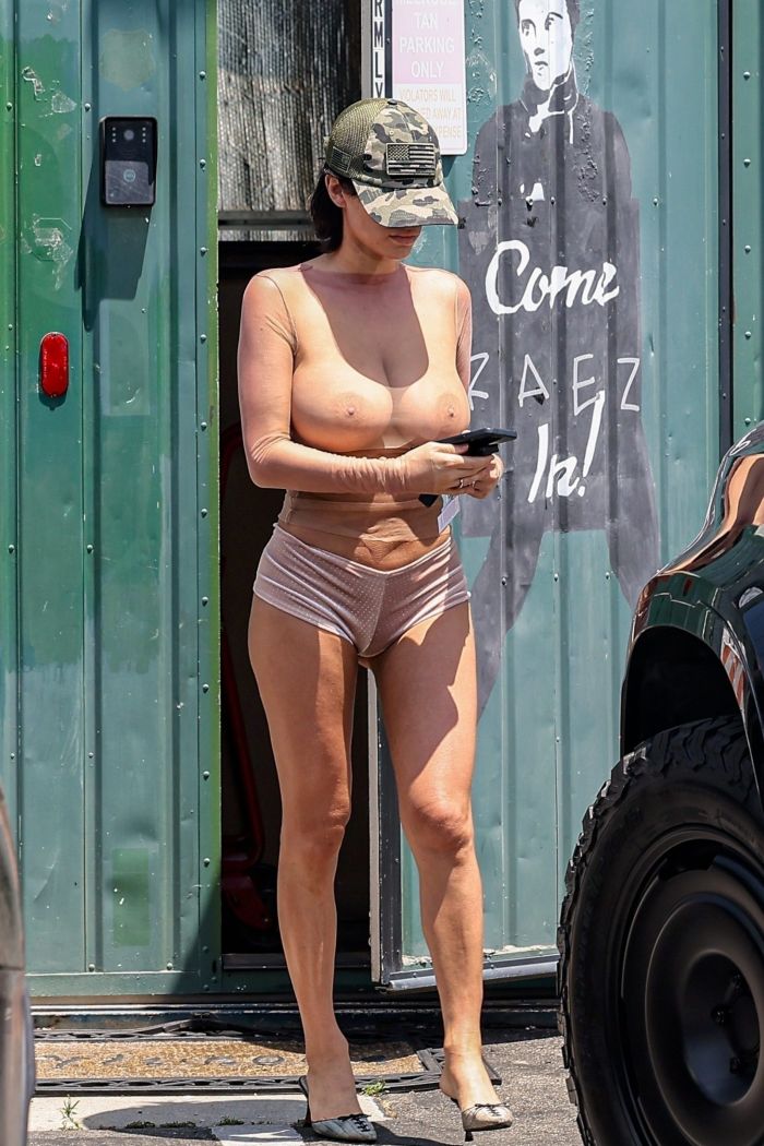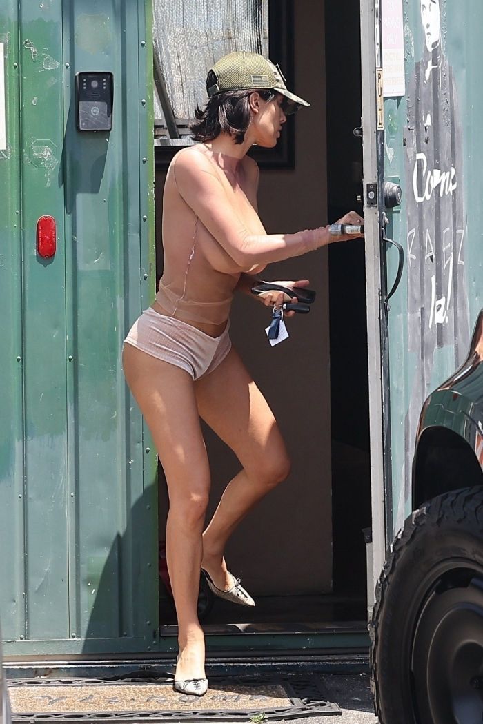 Жена Канье Уэста Бьянка Цензори не оставила простора воображению, направляясь в солярий, 29-летняя австралийская архитекторша обнажила грудь в полностью прозрачном сетчатом топе.