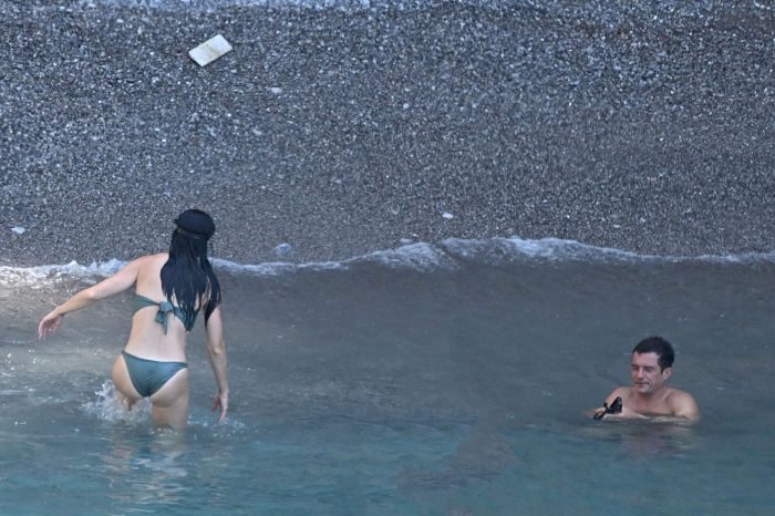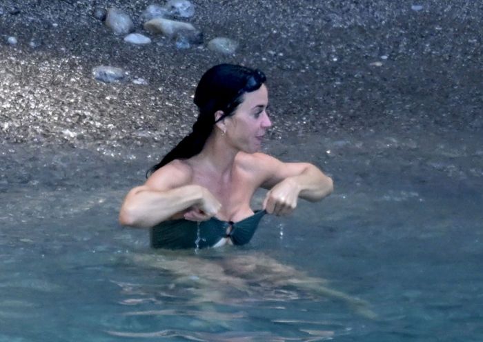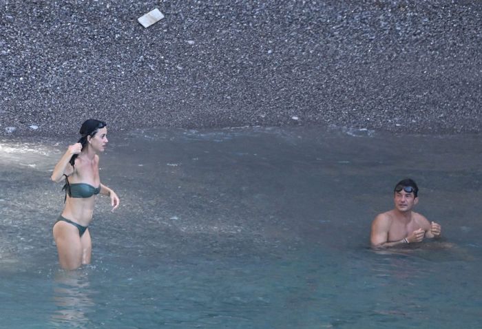 39-летняя американская певица, композитор, автор песен, актриса, посол доброй воли ООН Кэти Перри в откровенном бикини на пляже в Майори, Италия.