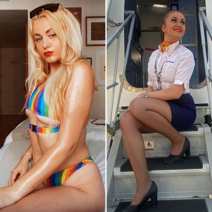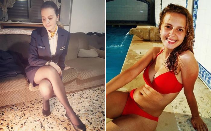 Все мы знаем, что стюардессами, чаще всего, работают ухоженные и соблазнительные девушки, которых все обычно видят в рабочей форме. Однако многие, хотели бы посмотреть на бортпроводниц без униформы. У вас появилась такая возможность - благодаря этой откровенной подборке.