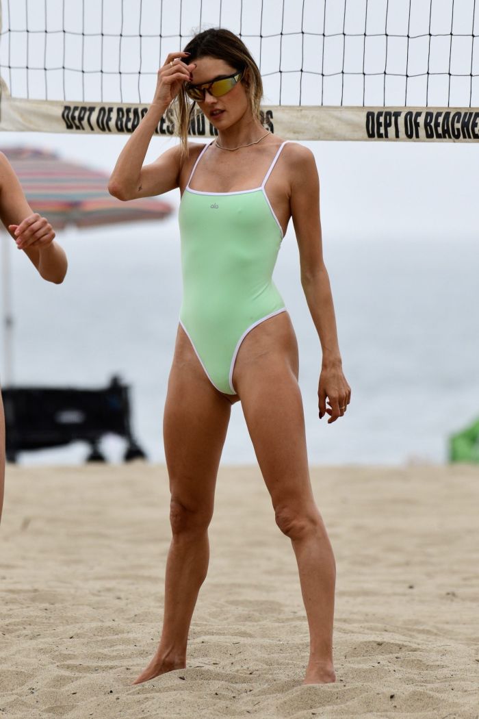 43-летняя бразильская супермодель Алессандра Амбросио (Alessandra Ambrosio) была сфотографирована, когда она щеголяла своей подтянутой фигурой в едва заметном мятно-зеленом купальнике на песчаных пляжах.