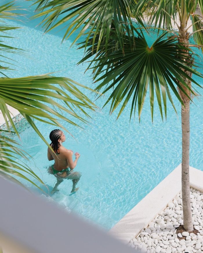 31-летняя американская рэп-исполнительница и автор песен Saweetie в бикини во время отпуска на тропическом острове.