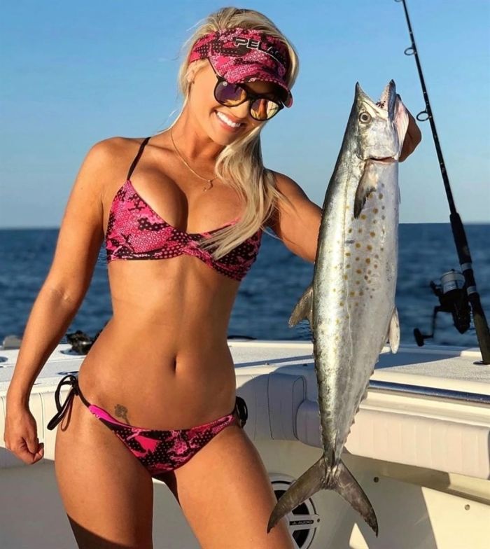 Подборка фотографий с привлекательными и красивыми девушками на рыбалке, мало того, красотки умудрилась поймать рыбу.