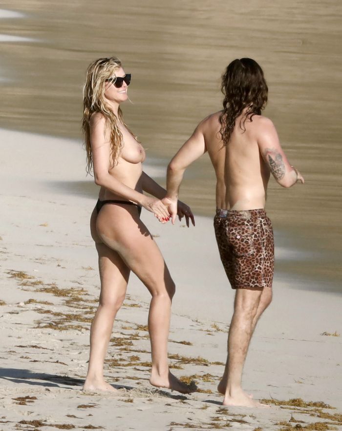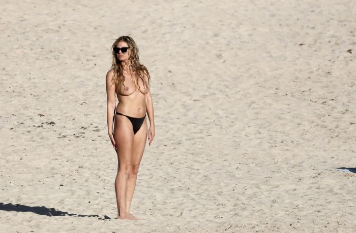 Замеченная на песчаных пляжах Сен-Барта, она уверенно позировала с обнажённой грудью в лучах золотистого солнца. На Хайди не было ничего, кроме чёрных трусиков-бикини, 51-летняя красотка умеет привлекать внимание.