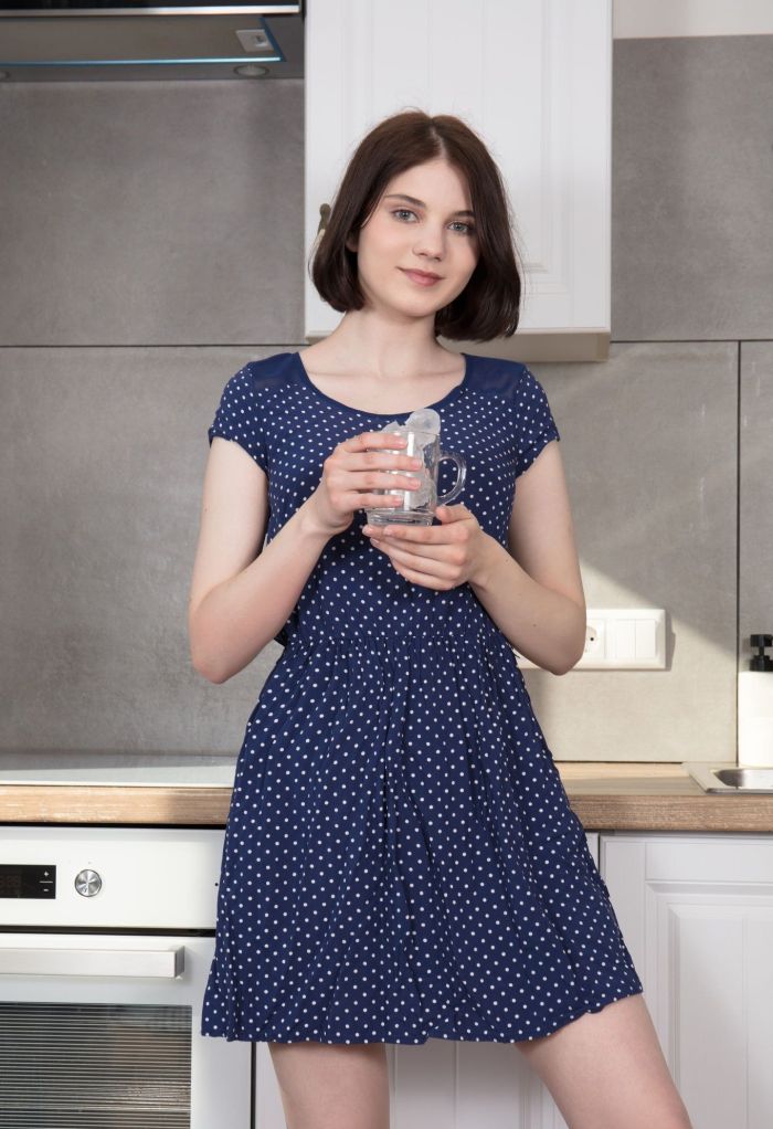 Игриво засветив под коротким платьем белые кружевные трусики, молодая девушка с упругой попкой медленно разделась на кухне до гола. Уверенно заигрывая с нами, нежная брюнетка с натуральной грудью эротично опускается прямо на пол и приглашающе раздвигает свои стройные ноги.