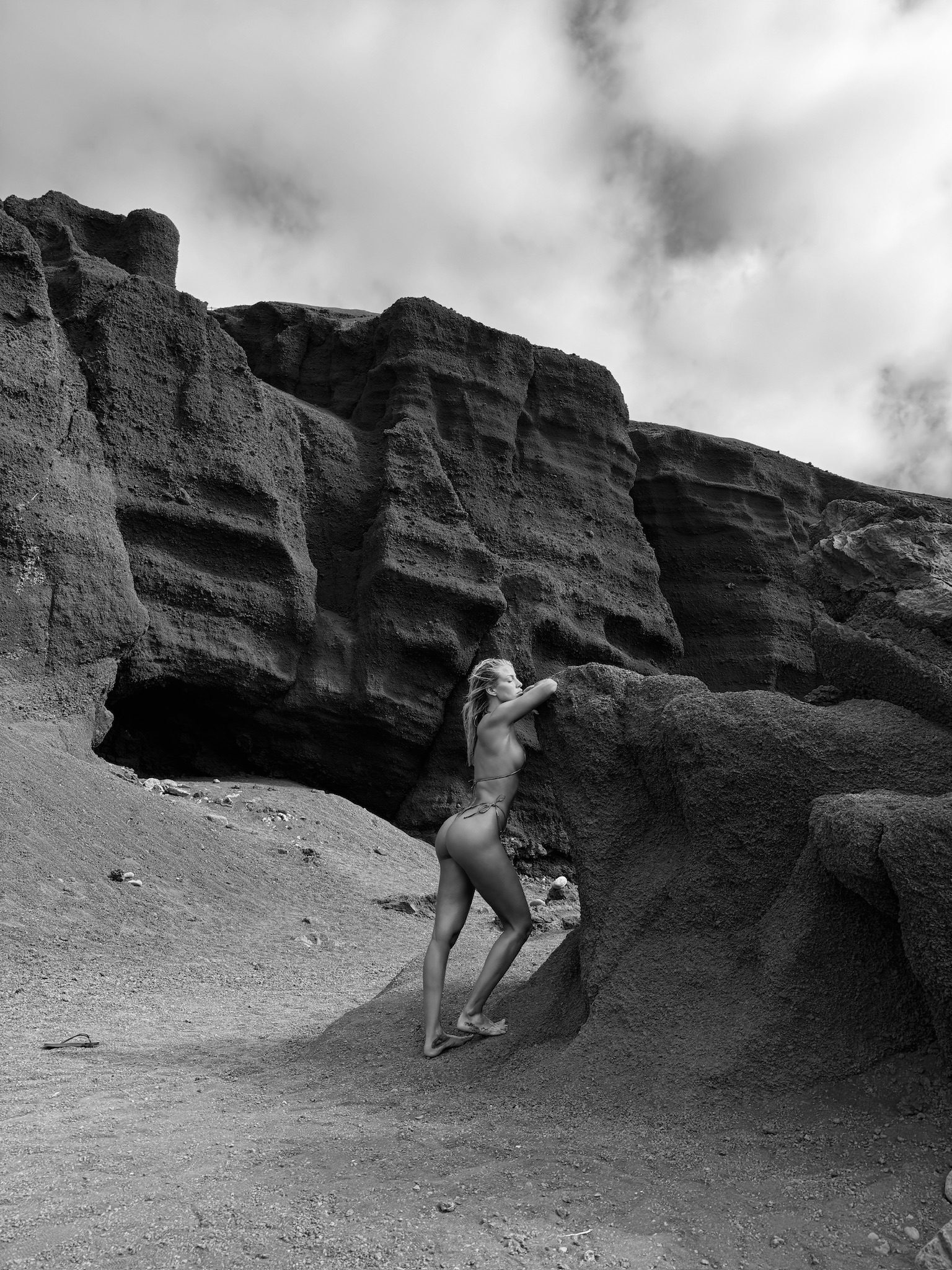 28-летняя испанская модель и дизайнер одежды Джессика Гойкоэчеа (Jessica Goicoechea) не просто носит бикини — она переосмысливает сексуальную привлекательность . На вулканических скалах и золотистых песках тело Джессики покрыто каплями воды, загорелое и абсолютно блестящее.