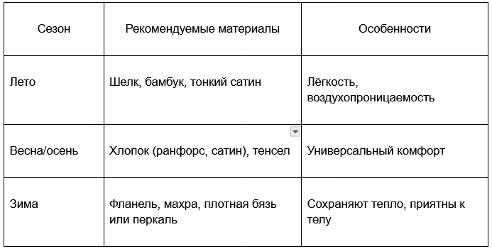 Комфорт сна напрямую зависит от того, насколько ткань адаптирована под сезон:
