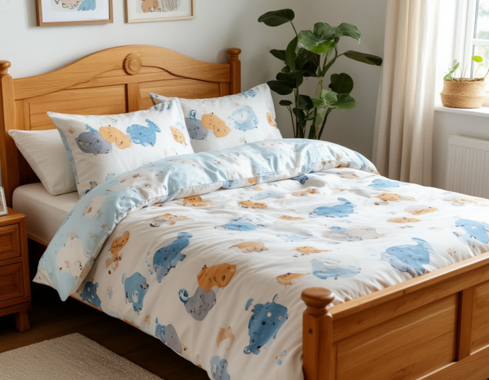 Для новорожденных подойдут комплекты из органического хлопка с плотным переплетением — они легко стираются, не теряют форму и не вызывают раздражения.