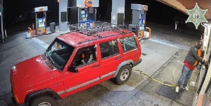 Другой конец ремня один из преступников прицепил к парадным дверям заправочной станции, после чего мужчина, находящийся внутри машины, нажал на педаль газа, дабы уже через несколько секунд вскрыть дверь постройки, в середине которой располагался банкомат, который и интересовал злоумышленников.