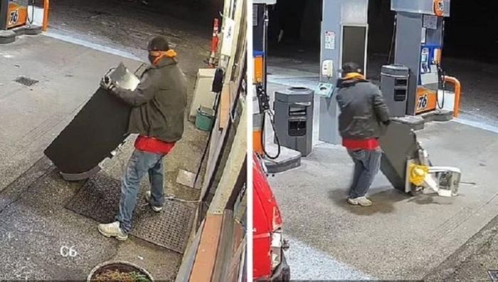 В Вашингтоне, США, два неуклюжих мошенника были пойманы на камеру при попытке украсть деньги из банкомата на заправочной станции, безуспешно провозившись с ним в течение 5 минут.