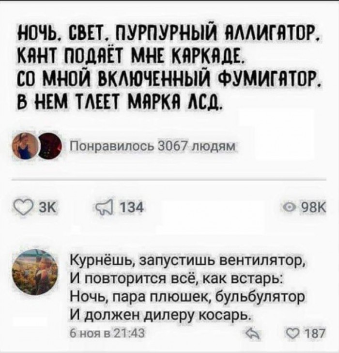 Смешные комментарии из социальных сетей, часть 81-лучшее Запостил: Viking,29-12-2019, 00:00вЮмор / Золото Свежие и веселые, до слёз смешные и позитивные скриншоты с комментариями из социальных сетей!Предыдущая часть ТУТ Смешные комментарии, комментарии из социальных сетей, часть 81, лучшее, юмор Нравится 19 Не нравится 4 Комментарии (1) Добавить комментарий Прокомментировать Введите два слова с картинки: Отправить #1 Гомер Местный 29 декабря 2019 08:32 0 Первый в тему, заебали своими голосовыми сообщениями Ответить