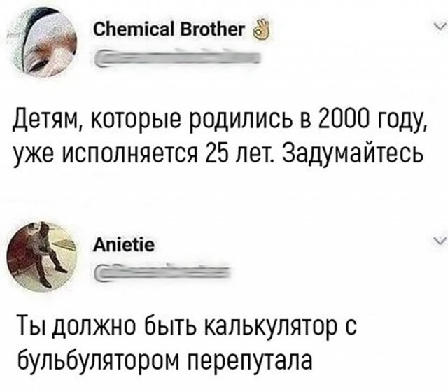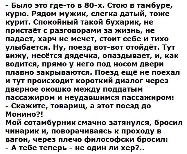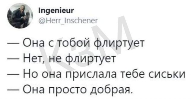 Подборка самых лучших приколов, часть 262 Запостил: Viking,8-03-2020, 00:00вЮмор / Золото Ежедневная подборка "Подборка самых лучших приколов". Каждый день новые смешные и прикольные фото, мемы и картинки. Смех до слез совершенно бесплатно! Подборка, юмор, мемы, самые лучшие приколы, часть 262 Нравится 28 Не нравится 3 Комментарии (1) Добавить комментарий Прокомментировать Введите два слова с картинки: Отправить #1 Alexander Beast Шутник 8 марта 2020 11:45 +1 а значет, казлы которые оба с рагами никаво не смутиле? Ответить