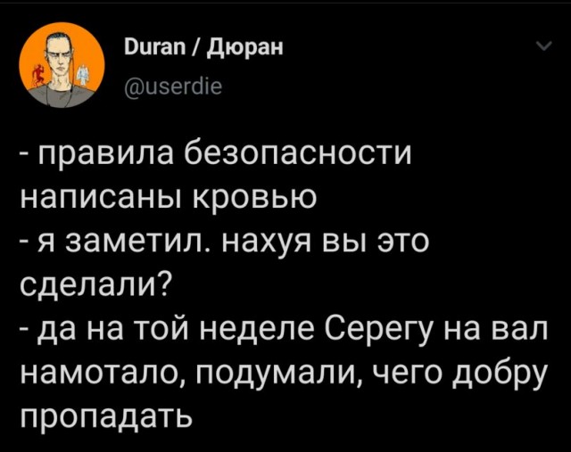 Юмор из сети Запостил: Viking,25-08-2020, 00:00вЮмор / Золото Подборка юмористических картинок, смешных фотографий с подписями из социальных сетей. Юмор, картинки Нравится 46 Не нравится 7 Комментарии (1) Добавить комментарий Прокомментировать Введите два слова с картинки: Отправить #1 Я Гость 25 августа 2020 15:12 0 Куча многократных повторов Ответить