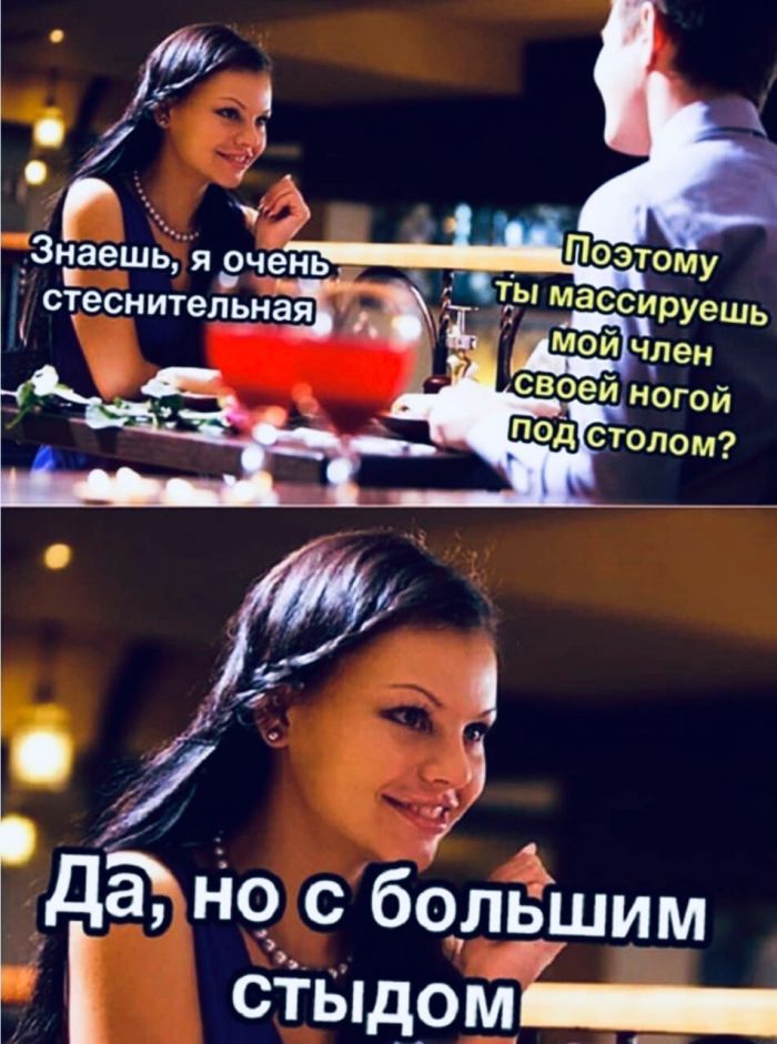 Очень пошлый юмор для взрослых, часть 8 Запостил: Viking,27-09-2020, 00:00вЮмор / Золото Горячая подборка забористого, пошлого юмора и шуток в мемах. Смотрим самые прикольные фото этой недели!Предыдущая часть ТУТ пошлый юмор Нравится 41 Не нравится 7 Комментарии (0) Добавить комментарий Прокомментировать Введите два слова с картинки: Отправить