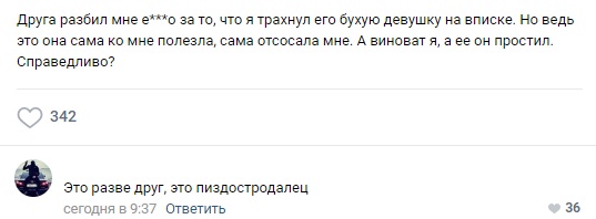 Лучшие истории из подслушанного Запостил: Viking,20-10-2020, 00:00вЮмор / Золото Лучшая подборка людских откровений с проекта подслушано! Истории пользователей стоят того, чтобы Вы обратили на них внимание, поверьте нам тут есть над чем посмеяться) Предыдущая часть ТУТ Нравится 35 Не нравится 2 Комментарии (0) Добавить комментарий Прокомментировать Введите два слова с картинки: Отправить