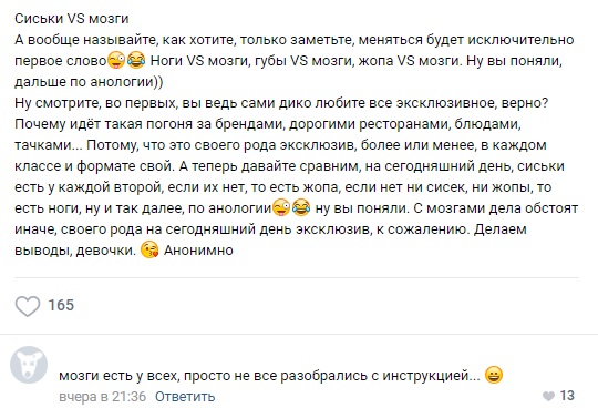 «Подслушано» - социальный развлекательный проект благодаря которому мы можем читать истории пользователей, пользователи делятся своими секретами и эти секреты с легкостью заставят вас улыбаться! В данной подборке мы подобрали лучшие из этих секретов и добавили смешных комментариев ... Предыдущая часть ТУТ