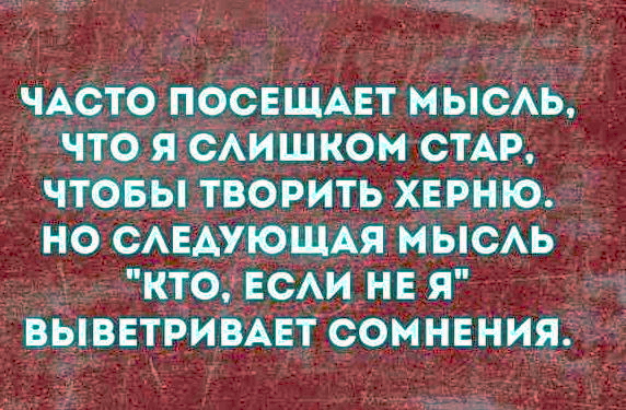 Картинки и мемы для отличного настроения Запостил: Viking,20-01-2021, 00:00вЮмор / Золото Сегодня хотим развеселить Вас очередной подборкой отличного юмора, в данной подборке Вы найдете лучшие картинки и мемы. Мы собрали для Вас лучшее, главное чтобы у Вас было хорошее настроение! Нравится 43 Не нравится 2 Комментарии (0) Добавить комментарий Прокомментировать Введите два слова с картинки: Отправить