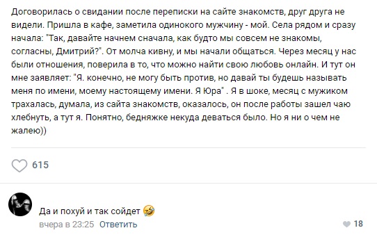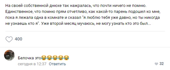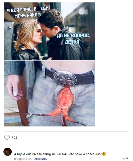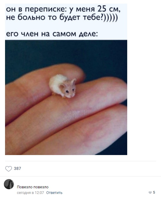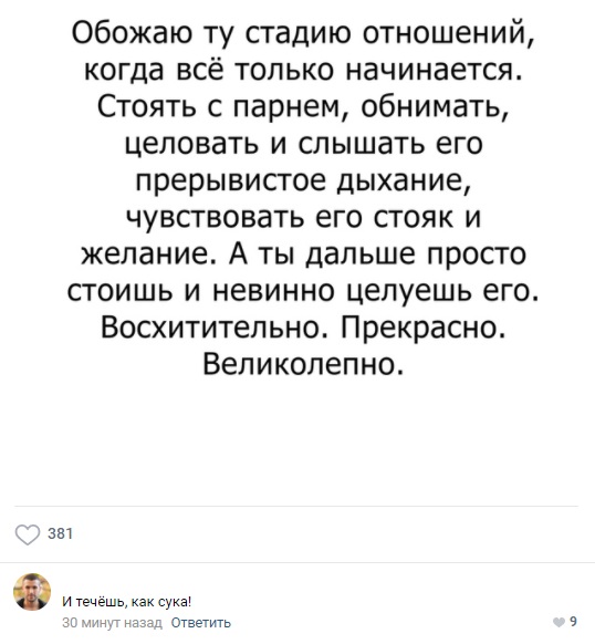 Пошлые комментарии которые стоит прочесть Запостил: Viking,4-02-2021, 00:00вЮмор / Золото Свежая коллекция пошлых комментариев из социальных сетей для любителей юмора с перчинкой. Мы подобрали самые пошлые комментарии, чтобы Ваше настроение было на нужном уровне!Предыдущая часть ТУТ Нравится 29 Не нравится 9 Комментарии (0) Добавить комментарий Прокомментировать Введите два слова с картинки: Отправить