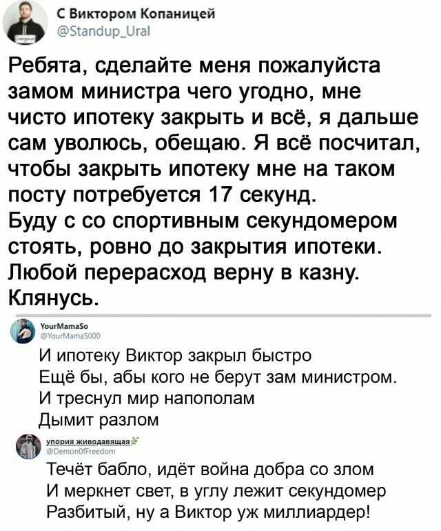 Юмор в комментариях Запостил: Viking,8-02-2021, 00:00вЮмор / Золото Свежая подборка забавных высказываний и комментариев из социальных сетей и других частей интернета сделает Ваш день намного интересней, так как мы собрали лучшие комментарии для того чтобы Ваше настроение было на высоте! Предыдущая часть ТУТ Нравится 47 Не нравится 11 Комментарии (1) Добавить комментарий Прокомментировать Введите два слова с картинки: Отправить #1 Анатомопаталог Гость 8 февраля 2021 00:37 +1 Да насчет мата: мне вооще это похў! Ответить
