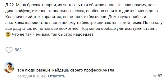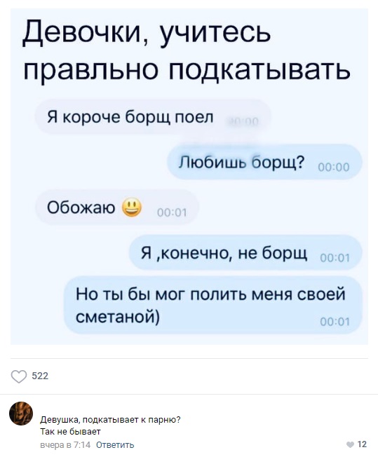 Некоторые пользователи стесняется говорить интимных вещах, другая часть интернета наоборот любит обсуждать запретное, а кто-то любит читать комментарии с перчинкой. Предлагаем вам почитать нашу подборку пошлого и откровенного юмора в который Вы найдете пошлые картинки и не мене пошлые комментарии. Предыдущая часть ТУТ