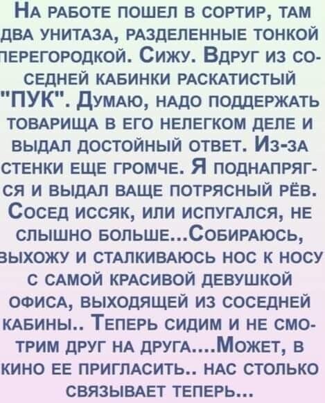 Юмор в картинках Запостил: Viking,9-02-2021, 00:00вЮмор / Золото Сегодня хотим поднять Вам настроение с самого утра новой подборкой, в которой вы найдете картинки с надписями, мемы, фото с юмором и многое другое. Нравится 32 Не нравится 13 Комментарии (1) Добавить комментарий Прокомментировать Введите два слова с картинки: Отправить #1 Гость Вячеслав Гость 9 февраля 2021 14:04 +3 Чего-чего? ICQ>200? Нет, серьезно, ICQ? Ответить