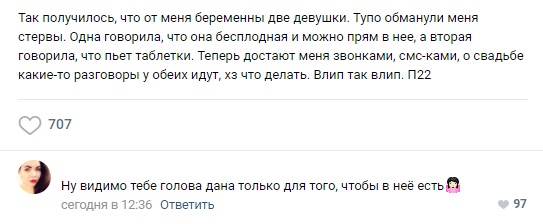 Свежая порция пошлых комментариев Запостил: Viking,11-02-2021, 00:00вЮмор / Золото Хотим Вас порадовать новой подборкой юмора с пошлинкой, в данной подборке собраны лучшие комментарии в которых не обошлось без пошлости. Уделите несколько минут на просмотр данной подборки и ваше настроение будет на высоте!Предыдущая часть ТУТ Нравится 36 Не нравится 7 Комментарии (0) Добавить комментарий Прокомментировать Введите два слова с картинки: Отправить