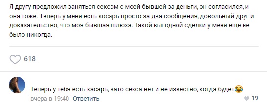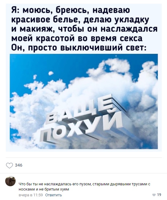 Юмор в пошлых комментариях Запостил: Viking,18-02-2021, 00:00вЮмор / Золото Хотим предложить вам свежую коллекцию пошлых комментариев из социальных сетей, данная коллекция подойдет для любителей пошлого юмора. Мы собрали самые пошлые комментарии, чтобы Ваше настроение было на нужном уровне! Предыдущая часть ТУТ Нравится 55 Не нравится 10 Комментарии (0) Добавить комментарий Прокомментировать Введите два слова с картинки: Отправить