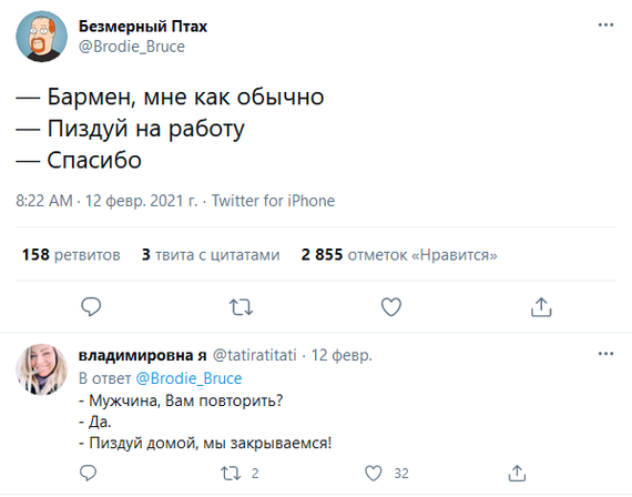 Прикольные комментарии из соцсетей новые Запостил: Viking,22-02-2021, 00:00вЮмор / Золото Смотрите и улыбайтесь свежей подборке прикольных картинок с комментариями. Лучшие комментарии из социальных сетей не дадут Вам скучать, это мы Вам гарантируем)Предыдущая часть ТУТ Нравится 52 Не нравится 16 Комментарии (0) Добавить комментарий Прокомментировать Введите два слова с картинки: Отправить