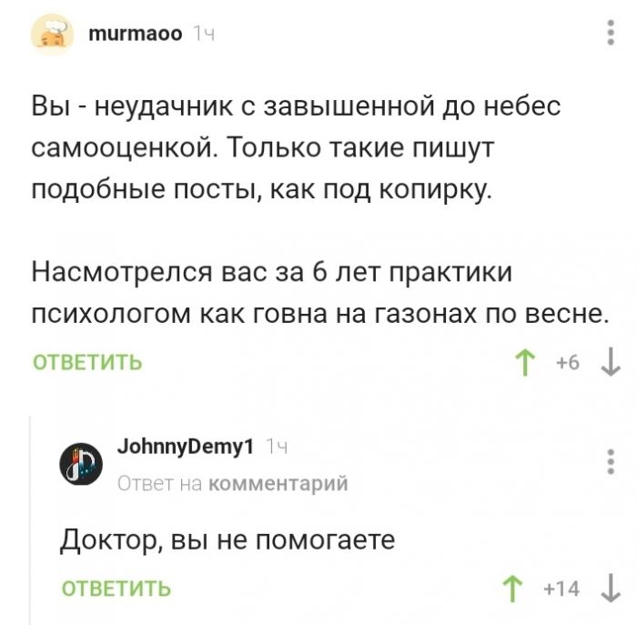 Самые оригинальные комментарии из сети Запостил: Viking,5-03-2021, 00:00вЮмор / Золото Предлагаем Вашему вниманию очередную подборку скриншотов из социальных сетей и других частей интернета для поднятия настроения!Предыдущая часть ТУТ Нравится 31 Не нравится 6 Комментарии (0) Добавить комментарий Прокомментировать Введите два слова с картинки: Отправить