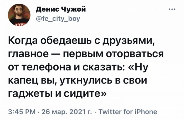 Подборка забавных комментариев из социальных сетей Запостил: Viking,29-03-2021, 00:00вЮмор / Золото Чтобы поднять Вам настроение мы собрали свежую подборку смешных комментариев из социальных сетей. Остроумные записи оставленные под постами в соцсетях в основном на юмористические, заставят Вас как минимум улыбнуться ... Предыдущая часть ТУТ Нравится 45 Не нравится 7 Комментарии (0) Добавить комментарий Прокомментировать Введите два слова с картинки: Отправить