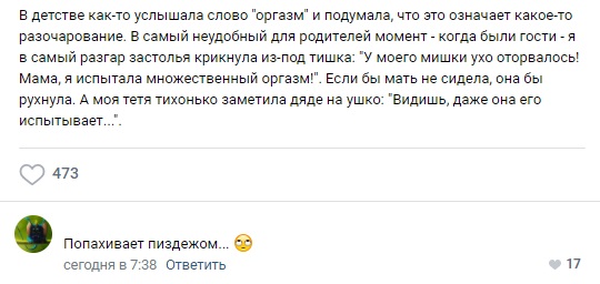 Пошлые картинки и смешные комментарии к ним Запостил: Viking,31-03-2021, 00:00вЮмор / Золото Предлагаем Вашему вниманию свежую подборку, в которой Вы найдете пошлые картинки и не менее пошлые и в тоже время смешные комментарии и высказывания к ним. Что еще нужно для для поднятия настроения!? Нравится 40 Не нравится 8 Комментарии (0) Добавить комментарий Прокомментировать Введите два слова с картинки: Отправить