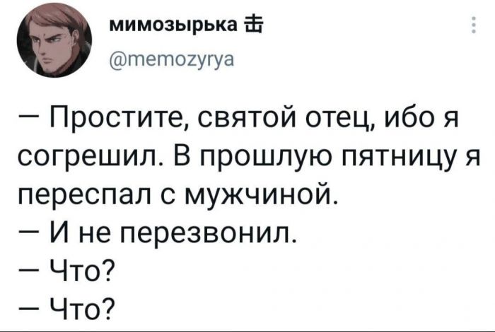 Комментарии и высказывания для настроения Запостил: Viking,31-03-2021, 00:00вЮмор / Золото Новая подборка смешных картинок и фото из социальных сетей со смешными комментариями и СМС-перепиской! Все что нужно для хорошего настроения в одной подборке!) Предыдущая часть ТУТ Нравится 35 Не нравится 7 Комментарии (0) Добавить комментарий Прокомментировать Введите два слова с картинки: Отправить