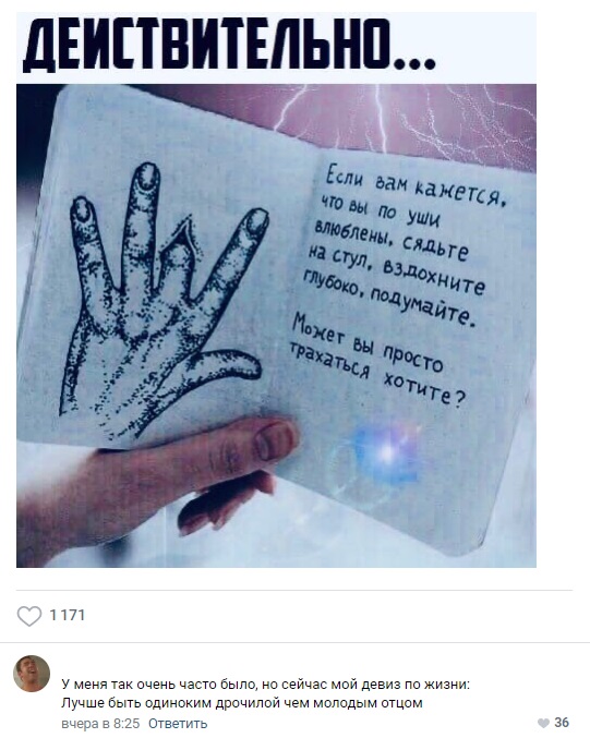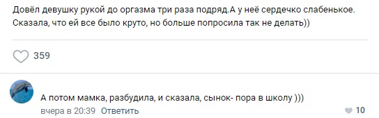 Юмор для взрослых в комментариях Запостил: Viking,5-04-2021, 00:00вЮмор / Золото Прикольные и остроумные комментарии на взрослые темы для хорошего настроения и отличного начала дня. Внимание, присутствует ненормативная лексика.Предыдущая часть ТУТ Нравится 34 Не нравится 10 Комментарии (0) Добавить комментарий Прокомментировать Введите два слова с картинки: Отправить