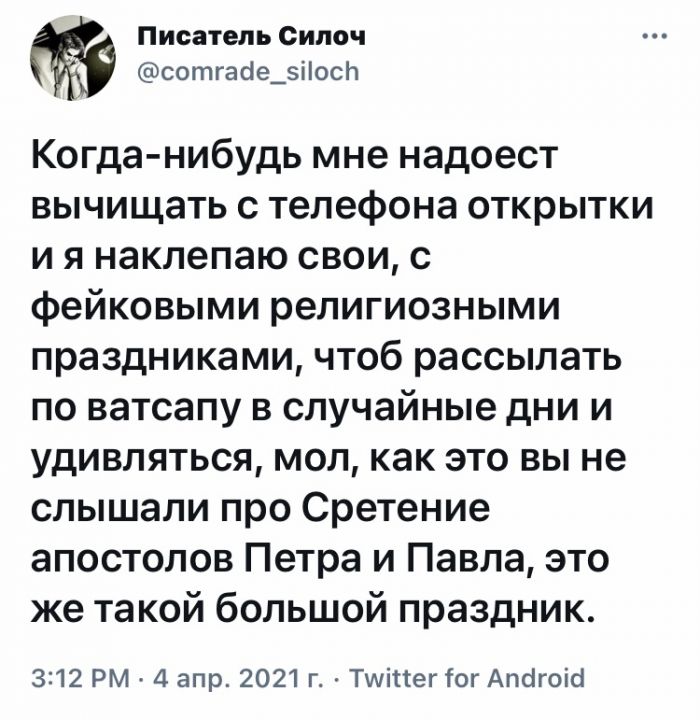 Самые смешные комментарии из социальных сетей Запостил: Viking,7-04-2021, 00:00вЮмор / Золото Предлагаем Вам посмеяться от души над самыми свежими и смешными комментариями из социальных сетей и различных мессенджеров. Все что нужно для отличного начала рабочего дня есть в данной подборке!)Предыдущая часть ТУТ Нравится 42 Не нравится 9 Комментарии (0) Добавить комментарий Прокомментировать Введите два слова с картинки: Отправить