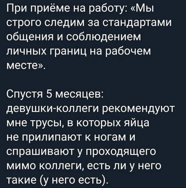 С пятницей — подборка прикольных картинок Запостил: Viking,16-04-2021, 00:00вЮмор / Золото Пятница у нас отличное настроение, так как впереди долгожданные выходные. Представляем вам прикольные картинки, которые сделает этот день еще интересней и позитивней!) Нравится 35 Не нравится 6 Комментарии (1) Добавить комментарий Прокомментировать Введите два слова с картинки: Отправить #1 suntEu Местный 16 апреля 2021 11:01 +2 Старо как гавно мамонта Ответить