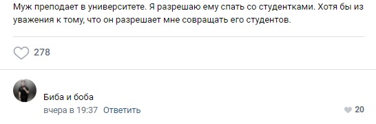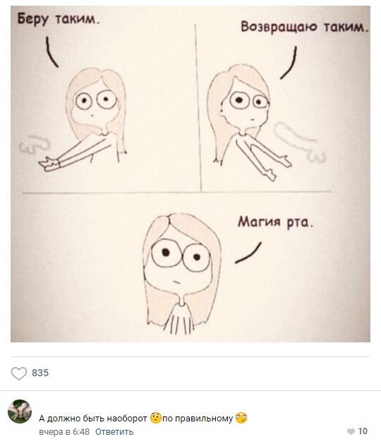 Свежая порция очень пошлых постов и не менее пошлых комментариев к ним с просторов социальных сетей. Лучшие комментарии с пошлинкой с легкостью поднимут Вам настроение!