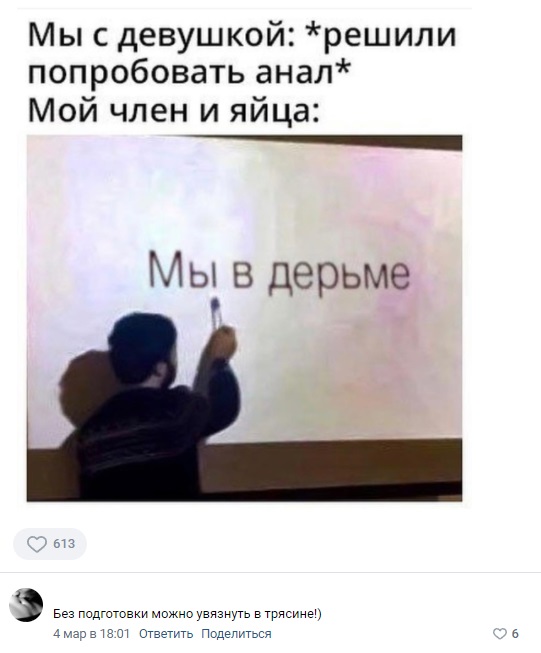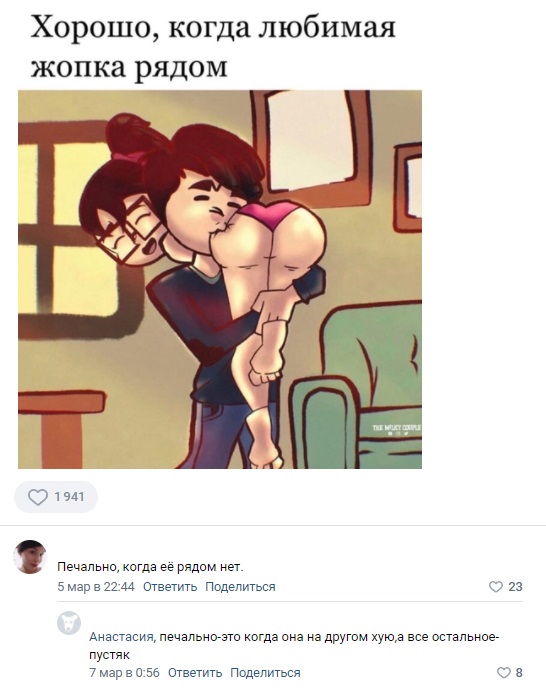 Большая подборка авторского юмора из социальных сетей, которая сможет разбавить обычный юмор своей пошлостью. Встречайте пошлые картинки и не менее пошлые, но в тоже время смешные комментарии...
