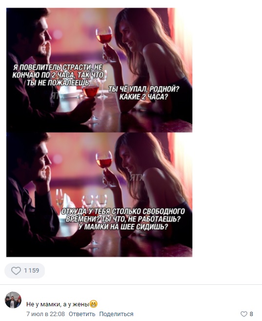 Пользователи сайта, которые не приветствуют юмор про отношения и немного аморальный юмор, вряд ли понравятся приколы из данной подборки.