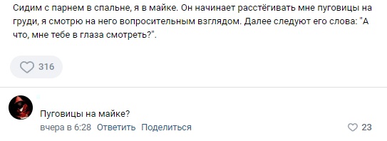 Пошлые и развратные комментарии Запостил: Viking,14-07-2022, 00:00вЮмор / Золото Эти прикольные комментарии обязательно заставят Васс улыбнуться. Свежая порция комментариев бесплатно и без регистрации. Смотрим самое смешное и делимся хорошим настроением.Предыдущая часть ТУТ Нравится 40 Не нравится 5 Комментарии (1) Добавить комментарий Прокомментировать Введите два слова с картинки: Отправить #1 Анатомопаталог Местный 14 июля 2022 12:37 +1 Очень приемлемо !!! Ответить