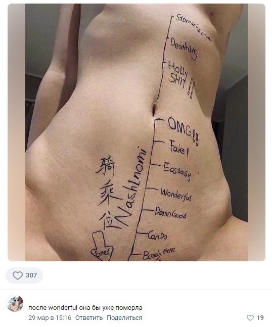 Комментарии для взрослых зачастую имеют сексуальную подоплеку или нецензурную лексику. Все комментарии из Российских социальных сетей, это прикольные истории опубликованные пользователи. Читайте самые смешные пошлые комментарии с матом и без мата. Большая коллекция пошлых комментариев, для взрослых.