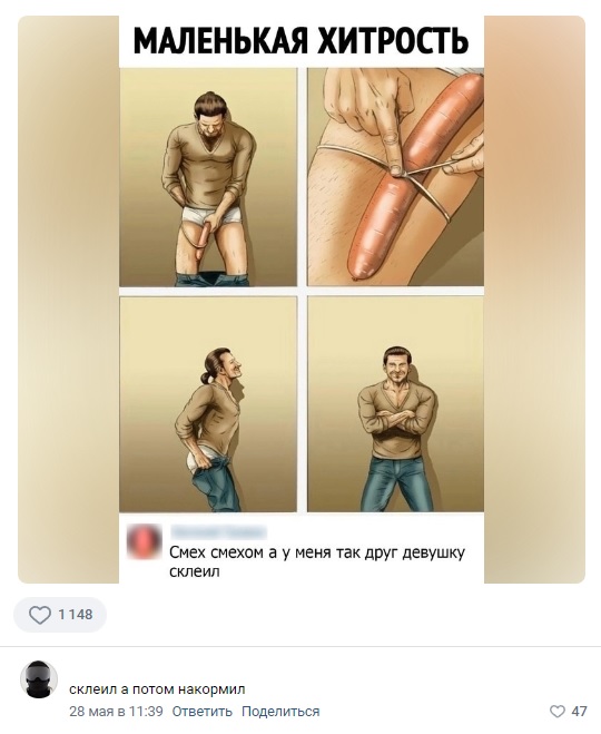 Комментарии и картинки для взрослых зачастую имеют сексуальную подоплеку или нецензурную лексику. Читайте самые смешные пошлые комментарии с матом и без мата.