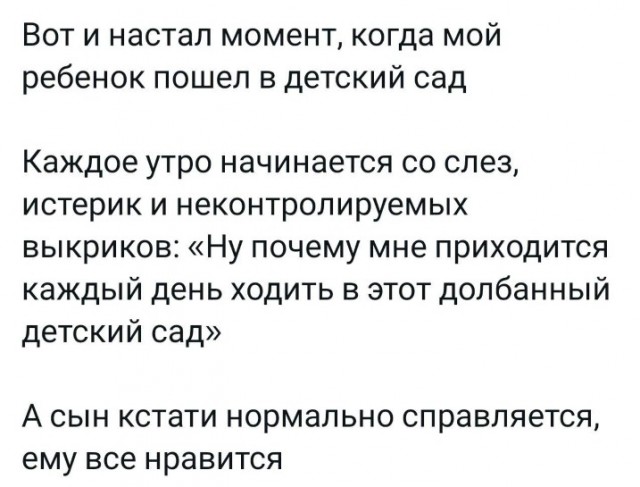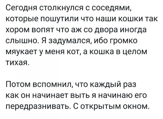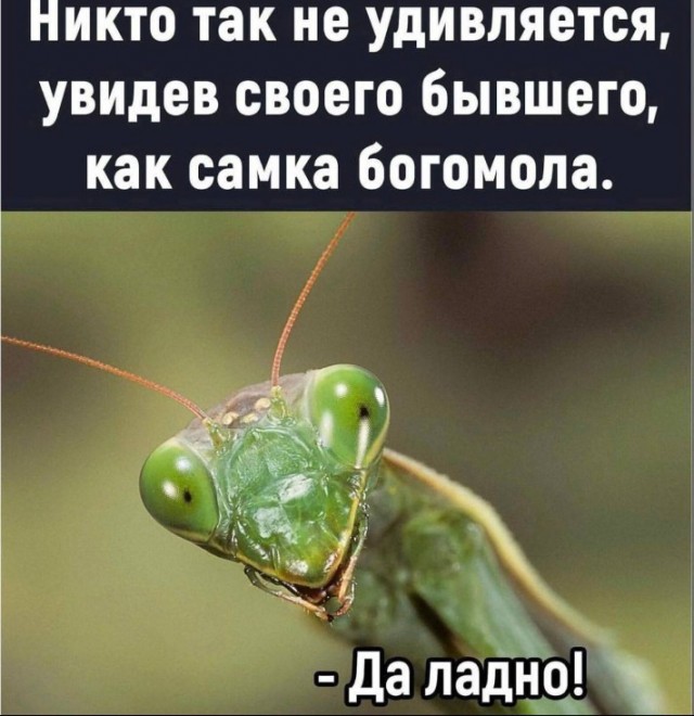 Новые мемы - смешные картинки для настроения Запостил: Viking,16-10-2023, 00:00вЮмор / Золото Встречайте новые мемы в смешных картинках с надписями, для поднятия тонуса и настроения на весь предстоящий день! картинки с надписями, подборка приколов Нравится 48 Не нравится 8 Комментарии (3) Добавить комментарий Прокомментировать Введите два слова с картинки: Отправить #1 Eddy92 Местный 16 октября 2023 07:46 +3 А что с предложением должно напугать? Ответить #2 djcezar Посетитель 16 октября 2023 11:32 0 Если я правильно понял - девушка не отражается в стекле Ответить #3 viper85 Местный 16 октября 2023 16:00 +2 В одном из окошек около двери - рожа человеческая Ответить