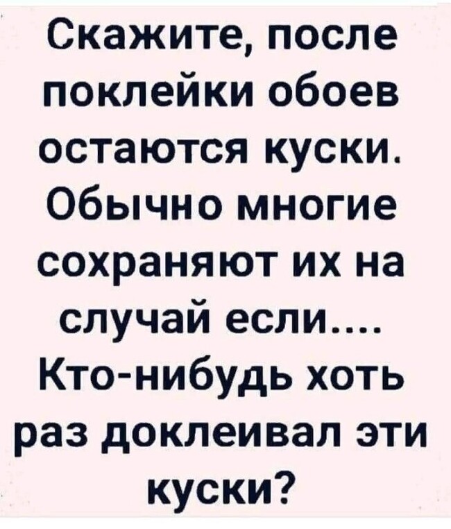 Веселая подборка юмора и приколов на понедельник Запостил: Viking,30-10-2023, 00:00вЮмор / Золото Свежая подборка юмора, новых приколов в смешных картинках с надписями для отличного начала этой сокращённой трудовой недели! картинки с надписями, подборка приколов Нравится 57 Не нравится 7 Комментарии (2) Добавить комментарий Прокомментировать Введите два слова с картинки: Отправить #1 yamatomaru Посетитель 31 октября 2023 10:01 +2 Что по самолётам-то???? Ответить #2 ded_moroz78 Посетитель 31 октября 2023 19:08 +1 @yamatomaru @yamatomaru Ответить