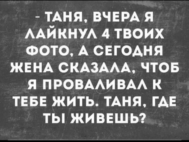 Сборник позитивных картинок и мемов для хорошего настроения в пятницу Запостил: Viking,15-11-2024, 00:00вЮмор / Золото Прикольная подборка картинок и мемов для вашего хорошего настроения и заряда бодрости в самый ожидаемый день рабочей недели! картинки с надписями, МЕМЫ, подборка приколов Нравится 62 Не нравится 10 Комментарии (0) Добавить комментарий Прокомментировать Введите два слова с картинки: Отправить