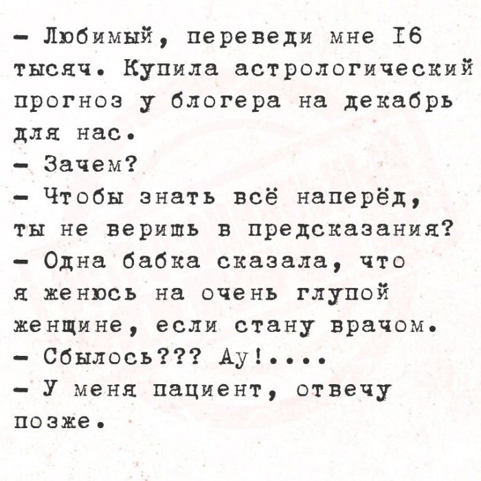 Новые приколы что-бы улыбнуться Запостил: Viking,17-12-2024, 00:00вЮмор / Золото Новая, смешная подборка картинок с надписями и мемов! Смотрите отборный юмор для хорошего настроения!Предыдущая часть ТУТ подборка приколов, МЕМЫ, картинки с надписями Нравится 60 Не нравится 10 Комментарии (0) Добавить комментарий Прокомментировать Введите два слова с картинки: Отправить