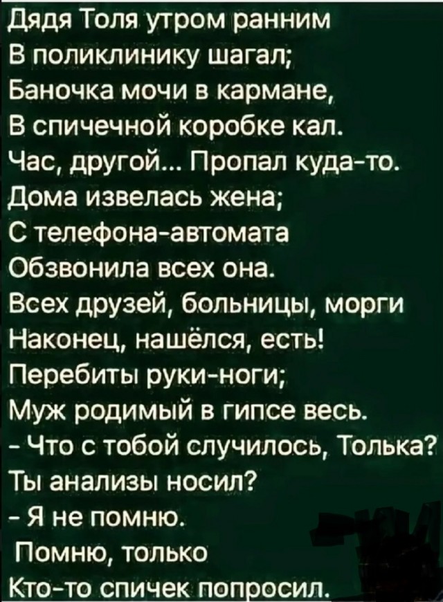 Так что не теряйте ни минуты! Откройте этот большой сборник отборного юмора прямо сейчас и позвольте ему сделать ваше субботнее утро по-настоящему замечательным. Ведь когда вы смеетесь, весь мир кажется ярче и добрее!
