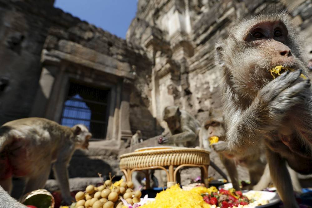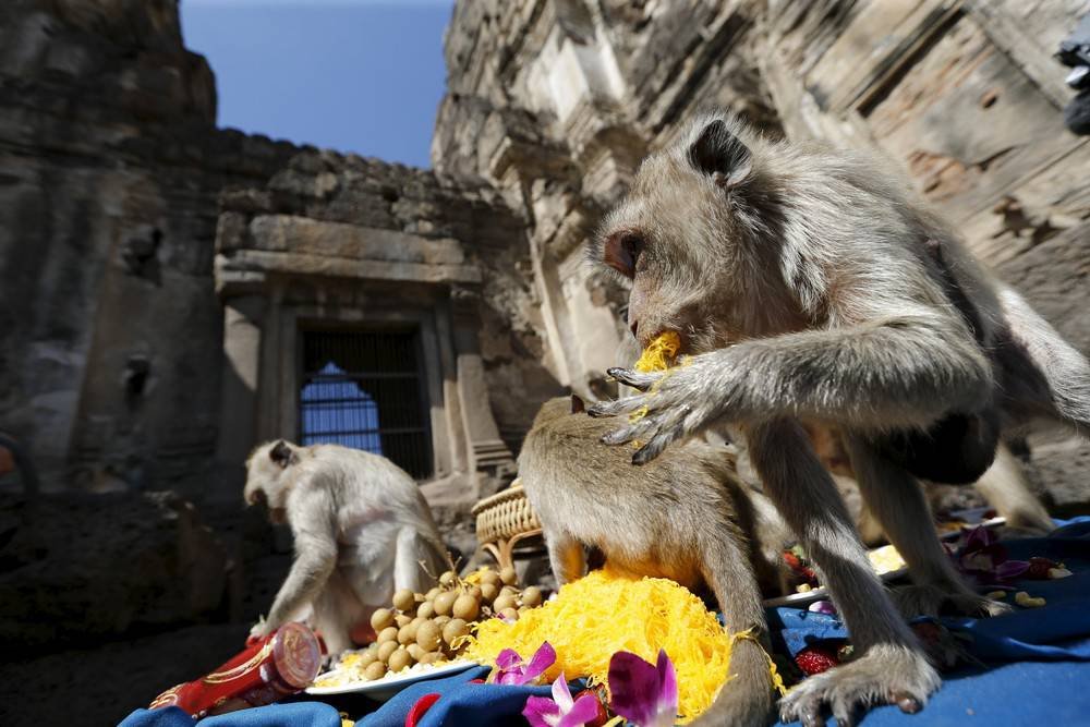 Фестиваль обезьян в Таиланде Запостил: Viking,4-12-2015, 10:24вЖивотные / Свежее Ежегодно 29 ноября в храме в Лопбури, к северу от Бангкока, проходит фестиваль обезьян. Люди приносят еду и напитки, что бы отблагодарить обезьян за привлечение туристов в их город. Более 2000 обезьян посетили в этот день "шведский стол" в храме. Фестиваль обезьян в Таиланде Нравится 0 Не нравится 0 Комментарии (0) Добавить комментарий Прокомментировать Введите два слова с картинки: Отправить