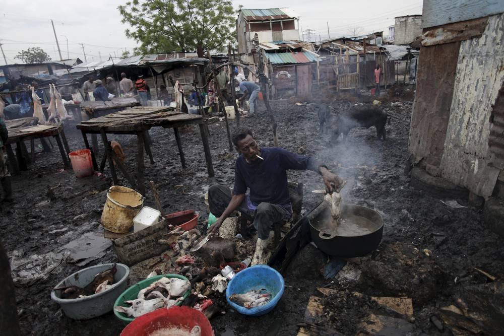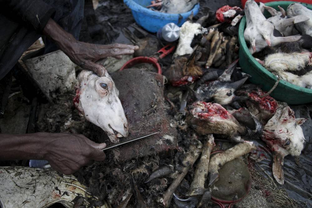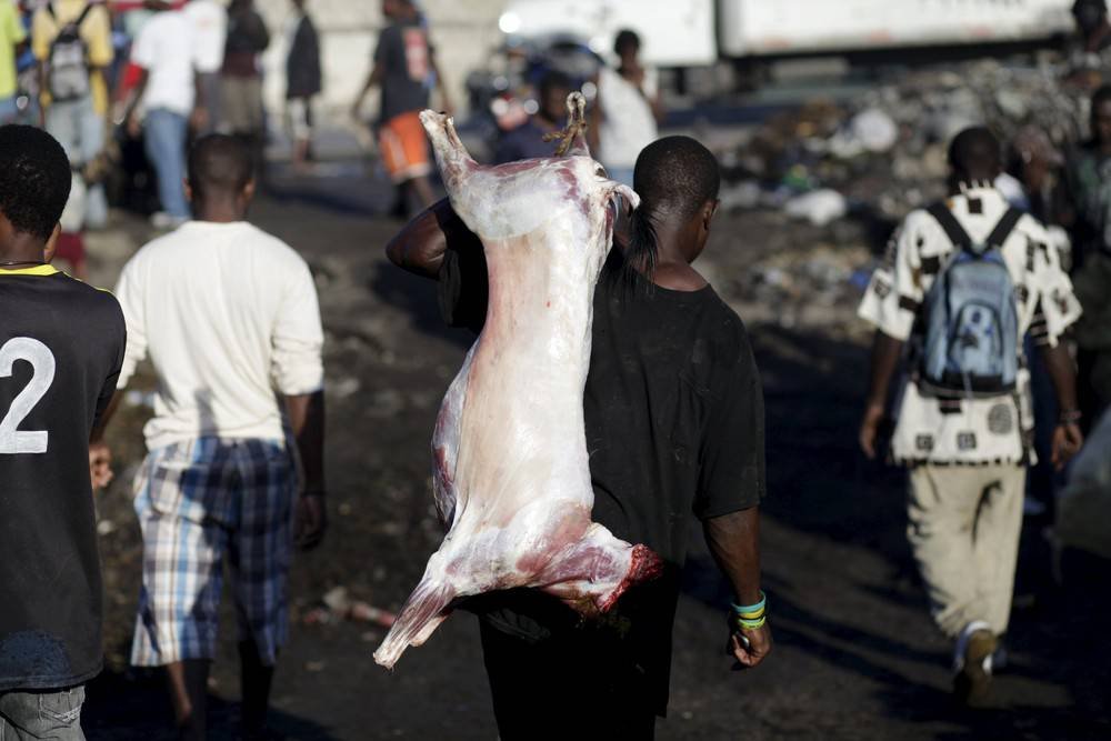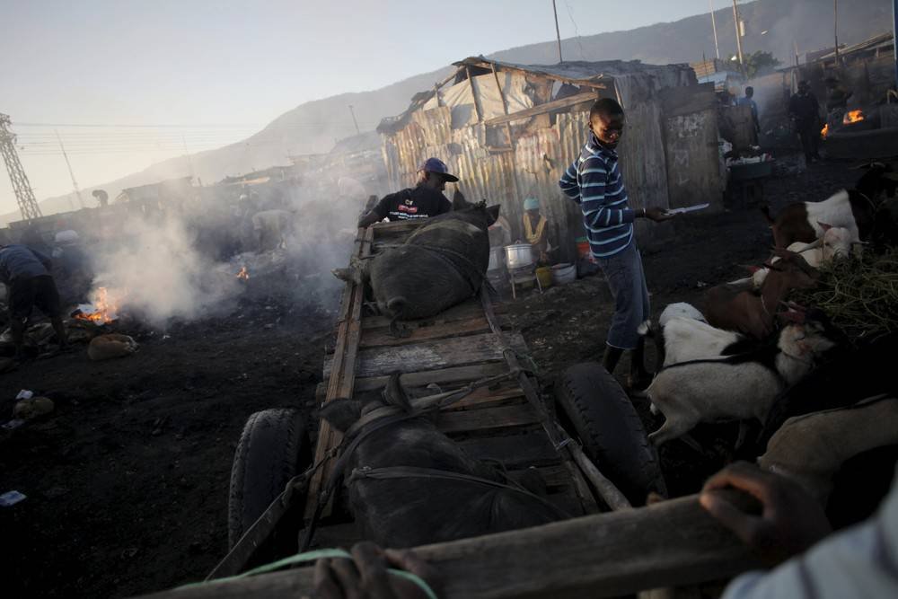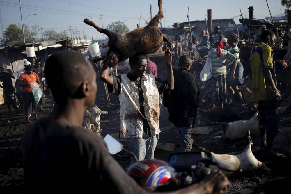 Предлагаю Вам посетить мясокомбинат под открытым небом в Порт-о-Пренс, Гаити. Это скопление лачуг с железными и брезентовыми крышами. Там свиней, коз и других животных убивают прямо среди грязи и мусора, а мясо поставляют на рынок. Даже речи не идет о соблюдении каких-то санитарных норм, а какой там запах...