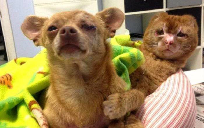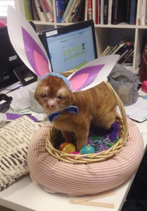 Талисманом одной ветеринарной больницы в Северной Каролине является кот по кличке Рассел, который получил серьезные ожоги во время пожара и чудом выжил. Животное нашли на 4-е сутки после происшествия и доставили в больницу. Ему сделали несколько операций, а его реабилитация продолжается до сих пор, но на 100% он уже не восстановится никогда. Рассел научился ухаживать за другими пациентами больницы и теперь при каждой возможности идет к своим новым друзьям.