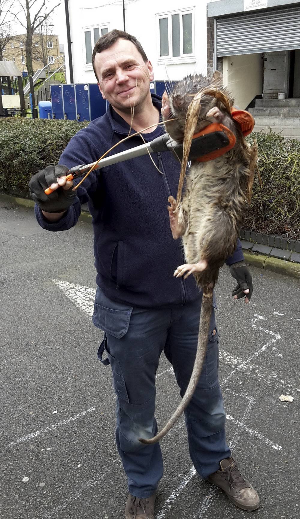 Лондонский сотрудник службы по контролю за вредителями Ди Бурр во время инспекции жилого района Тутинг обнаружил гнездо с гигантскими крысами. По мнению специалистов, они могли вырасти до таких размеров лишь пожирая более мелких сородичей.