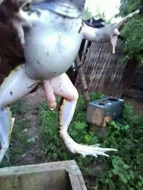 Эта лягушка, найденная чуваком в саду - точно заколдованный принц. Все при нем - видно невооруженным взглядом. Тем не менее, если бы она превратилась в человека, то между ног у нее была бы недоразвитая нога, а не то, о чем можно подумать - у лягушек не бывает пениса.